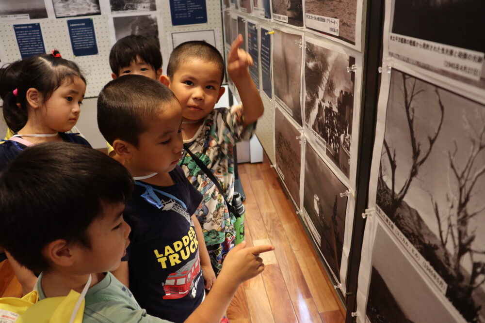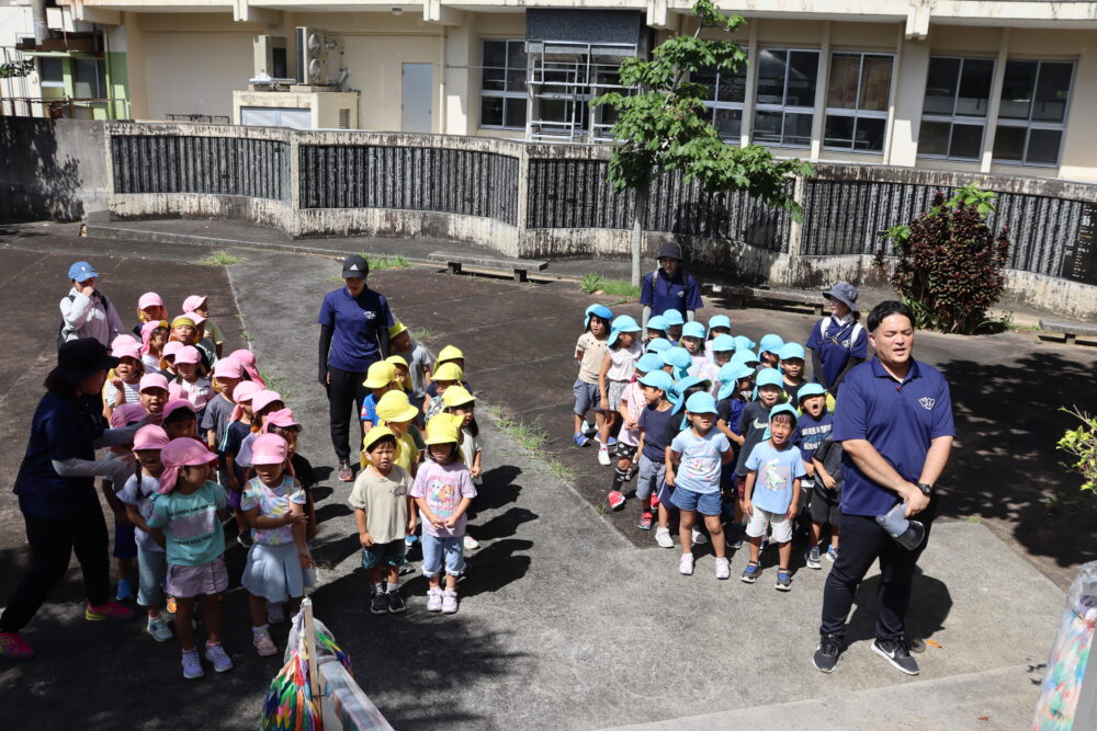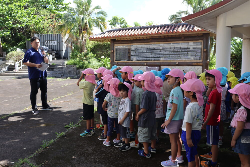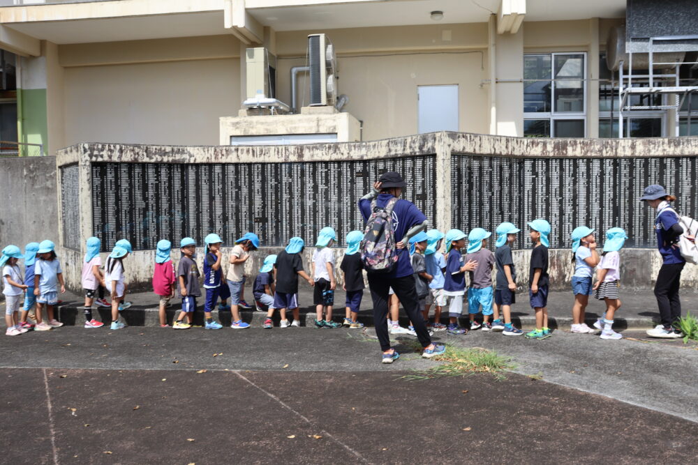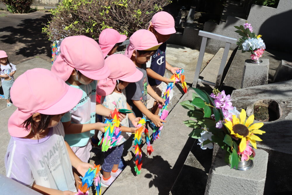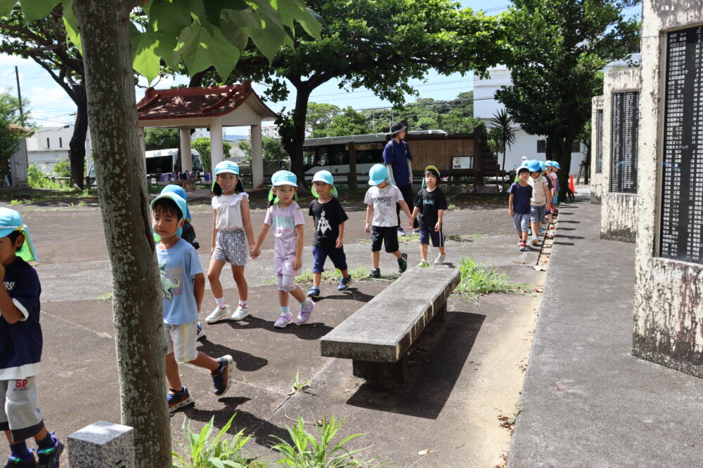 6月23日は「慰霊の日」です。 今日は西原の塔、役場の平和資料展の見学に行きました 西原の塔にみんなで「ずっと平和が続きますように」と祈りを込めて千羽鶴を捧げましたよ。平和学習を通して、平和の大切さ・戦争のこわさを学んだ子どもたちです。 春の遠足 ☆保育参観の様子 関連記事一覧 ☆保育参観の様子 ♪1学期後半開始♪ 西原東こども園に移行 交通安全指導を受けました♪