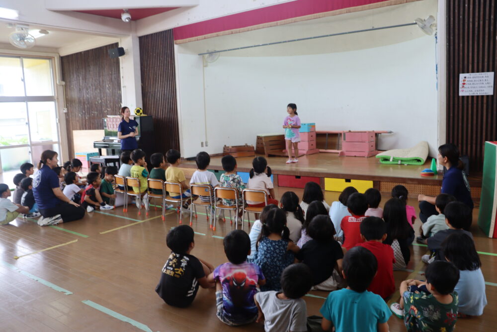 今日は、1学期前半終了の集会をしました😆 園長先生と①早寝早起き朝ごはん②挨拶をする③お手伝いをする④お約束を守ることを確認しました🧑🏫🌹1号のお友達は8月22日(金)に元気で会いましょう‼︎ 💦水遊び・フール遊び集会💦 🍉園で育てたスイカを食べてみよう🍉 関連記事一覧 西原東こども園に移行 平和についての学び(西原の塔見学) 💦水遊び・フール遊び集会💦 春の遠足