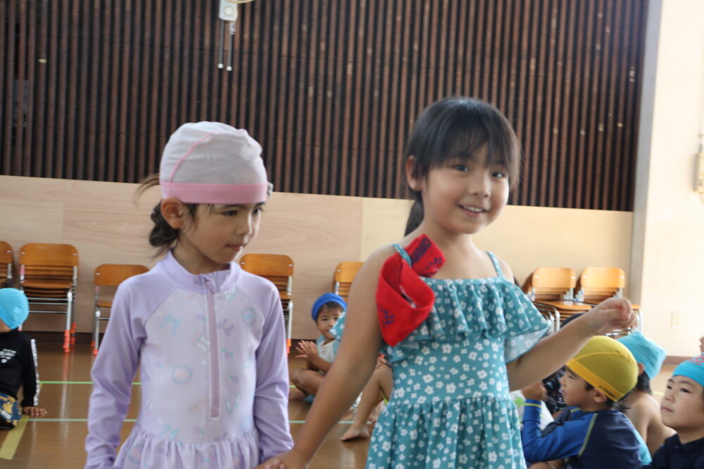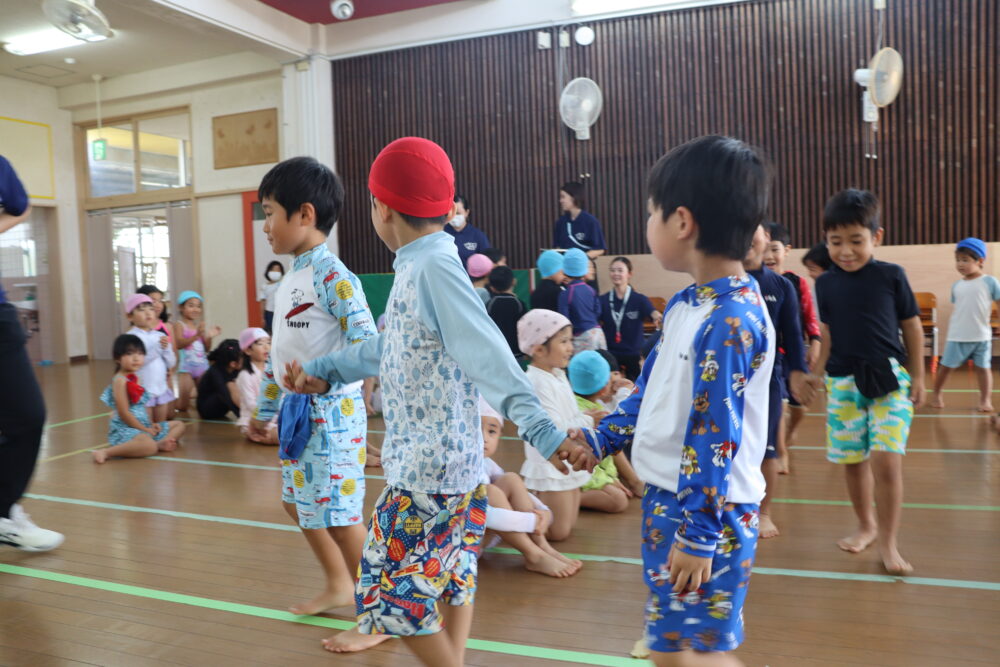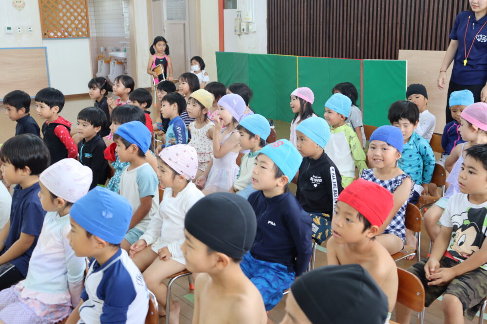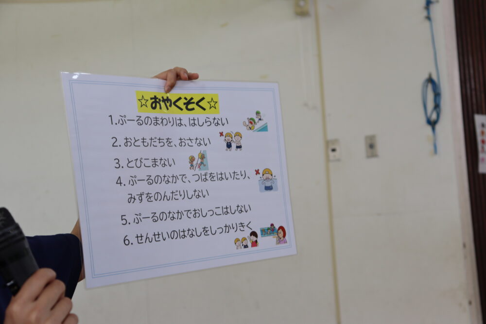 そんな時こそ、しっかりお約束ごとを確認❗️という事でプール集会にて、子どもたちと6つの約束を確認してから入水しています🏊♀️