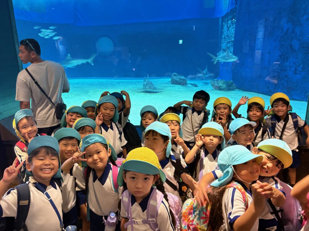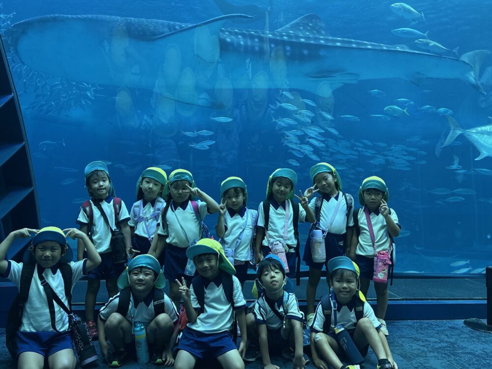 秋の遠足を実施しました 5歳児クラスは、沖縄美ら海水族館を訪れ、海の生き物を間近で観察しました 大水槽の魚たちの泳ぐ姿に興味を持ち、公共施設での約束を守りながら見学することができました 4歳児クラスは、道の駅ぎのざへ出かけ、広場や遊具で体を動かしながら、友だちとの関わりを楽しみました 各年齢に応じた体験を通して、学びと交流を深める機会となりました。 ☆お盆集会の様子☆ ☆1学期終業式☆ 関連記事一覧 陸上競技大会に参加! 春の遠足 ☆お盆集会の様子☆ 🏆第1回運動会🏆