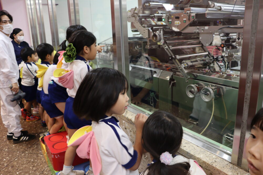 工場では、紅芋タルトができあがるまでの工程を興味深く見つめ、「こうやって作るんだね」と驚きの声も聞かれました。身近なお菓子がどのように作られているのかを知る、貴重な体験となりました![]()