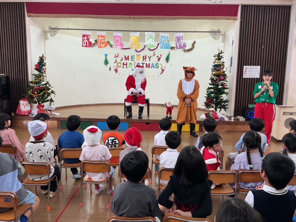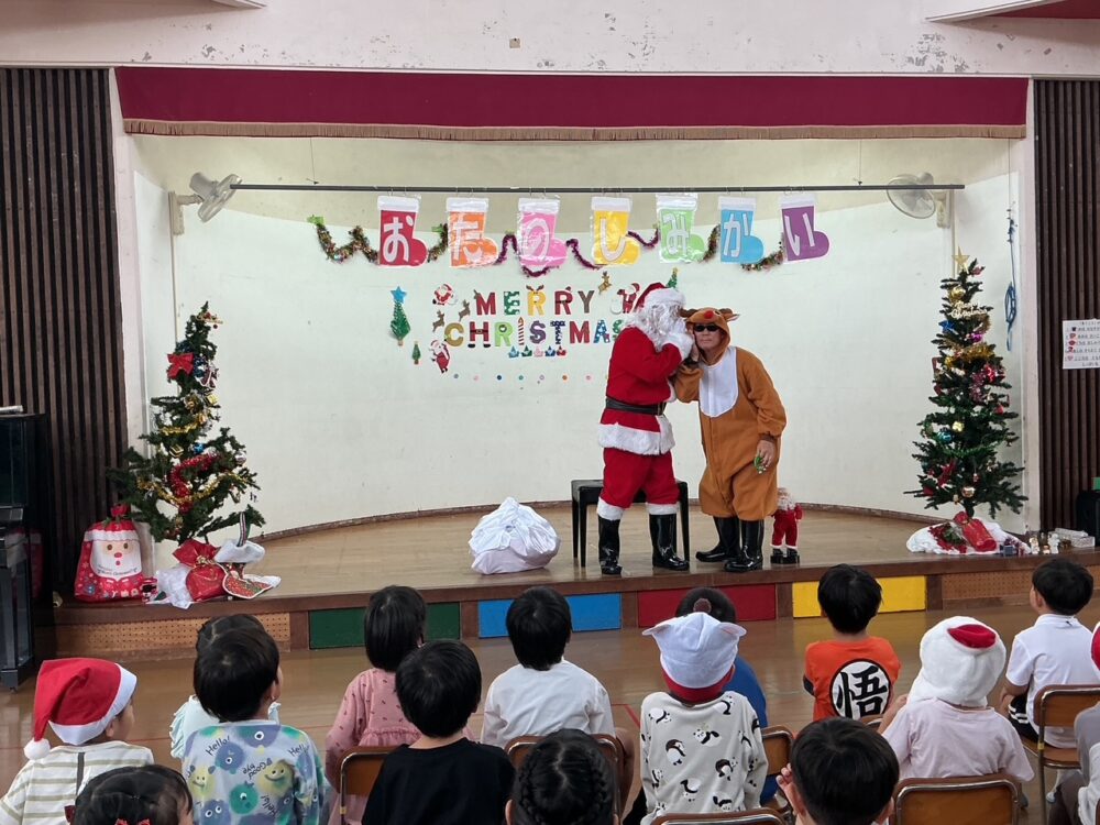 お楽しみ会を行いました🎅 サプライズでサンタクロースとトナカイが登場!!突然の登場に、会場は歓声と笑顔に包まれました サンタクロースからは、お菓子のプレゼントが手渡され、子どもたちはとても嬉しそうな様子でした 最後には、一人ひとり写真撮影も行い、思い出に残るひとときとなりました。心あたたまる楽しい一日となりました。 園外保育(紅芋タルト工場見学&公園) 🚔沖縄県警察年頭視閲式🚔 関連記事一覧 ☆保育参観の様子 🍠芋ほり遠足🍠 平和についての学び(西原の塔見学) 🚔沖縄県警察年頭視閲式🚔