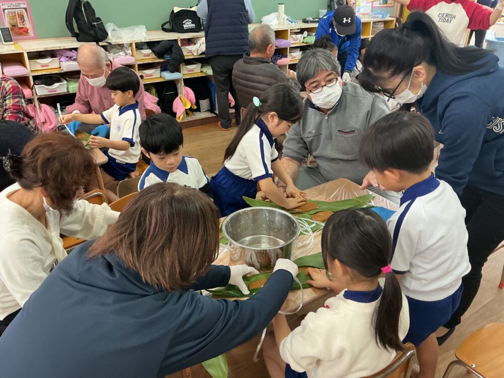 祖父母交流会を開催しました🌸 一緒にムーチー作りを体験しました。包み方を優しく教えていただきながら、和やかな雰囲気の中で交流を楽しみました。 また、おじいちゃん・おばあちゃんによる得意なことの披露もあり、笑顔も沢山あふれ温かい拍手に包まれるひとときとなりました 子どもたちからは、ダンスやエイサーを披露しました。元気いっぱいの演技に、会場は笑顔と拍手であふれました(^^♪ 🏆第1回運動会🏆 👹節分(豆まき)👹 関連記事一覧 🌻1学期前半終了式🌻 ☆1学期終業式☆ ☆お盆集会の様子☆ 西原東こども園に移行