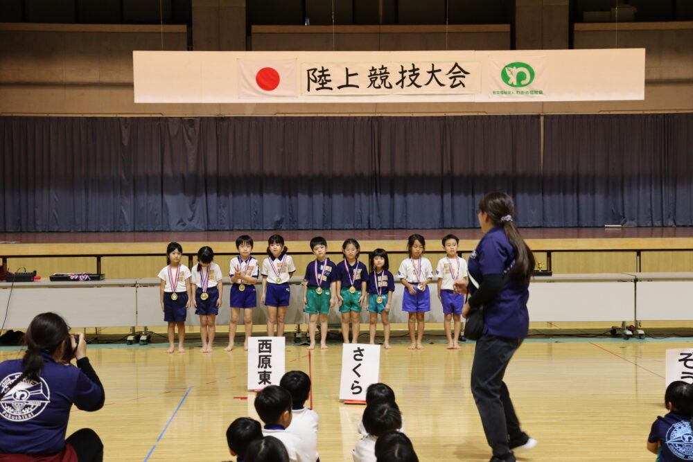今日は、子どもたちが楽しみにしていた陸上競技大会でした 大きな会場に少し緊張した様子も見られましたが、なわとび、リレー、体操競技など、どの種目にも全力で取り組む姿が印象的でした。 競技の中では、悔し涙を流す場面もありましたが、メダルを手にして仲間と喜びを分かち合う姿も見られました。応援の声も大きく、「みんなーチバリヨー!」と熱気あふれる大会となりました 子どもたちのがんばる姿と成長を感じられる、充実した一日となりました